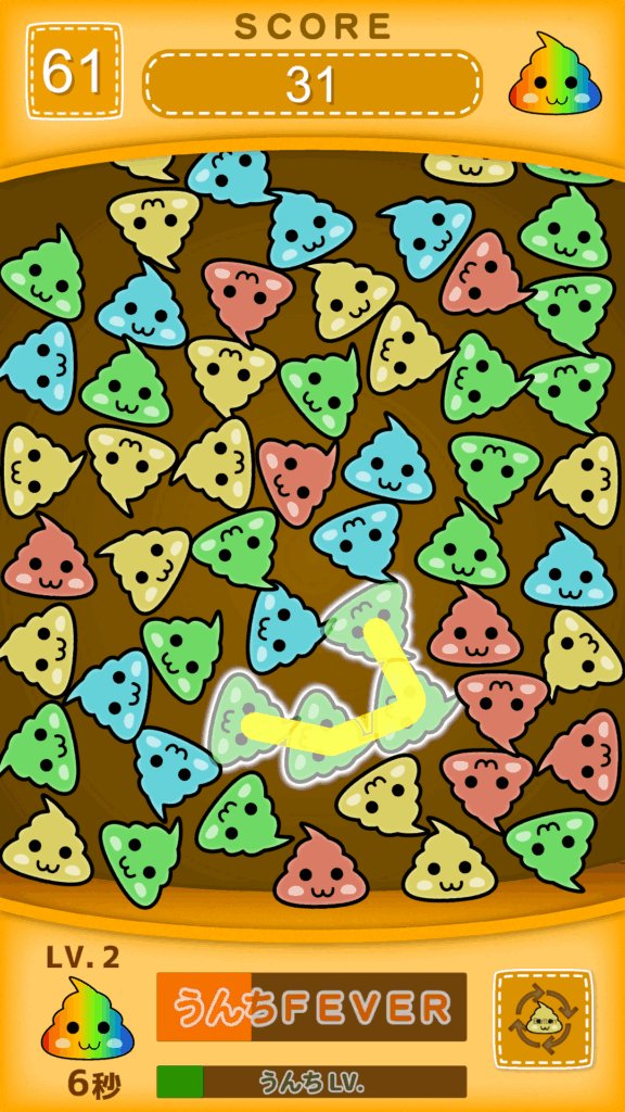 遊び方は簡単。同じ色のうんちを3つ以上なぞってつなげるだけ。