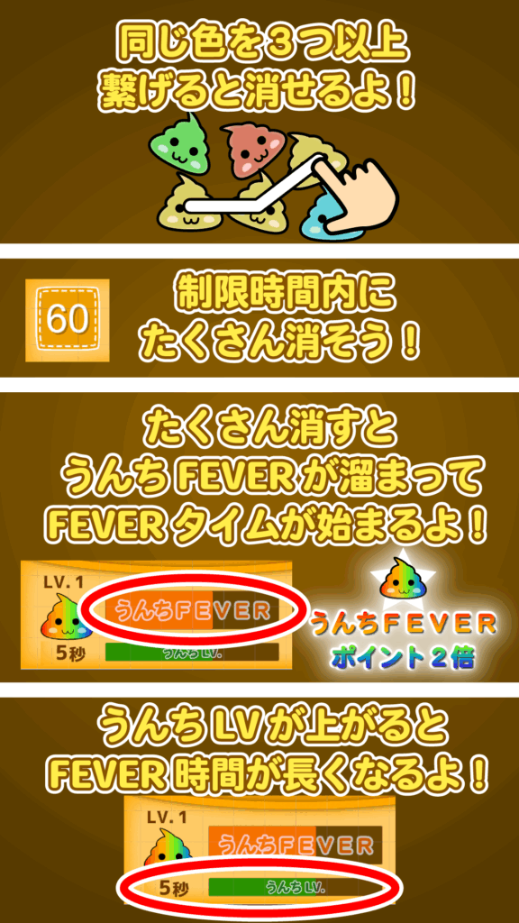 うんちFEVERを狙って、タイムアップまでに高得点を目指そう!