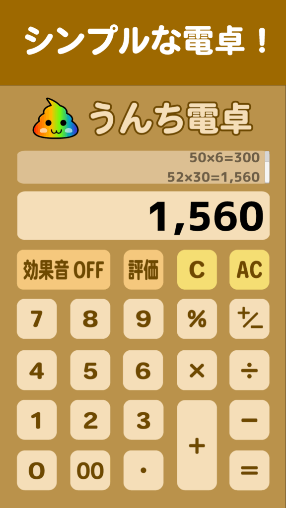 うんち電卓は、シンプルでかわいい無料の電卓です(・▽・)